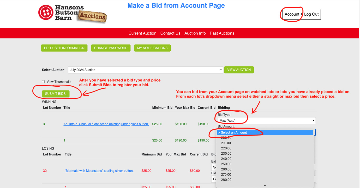 Auction Bidding Instructions
